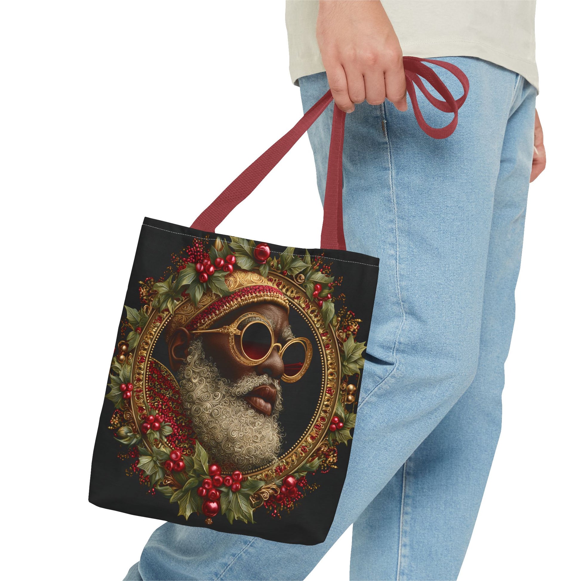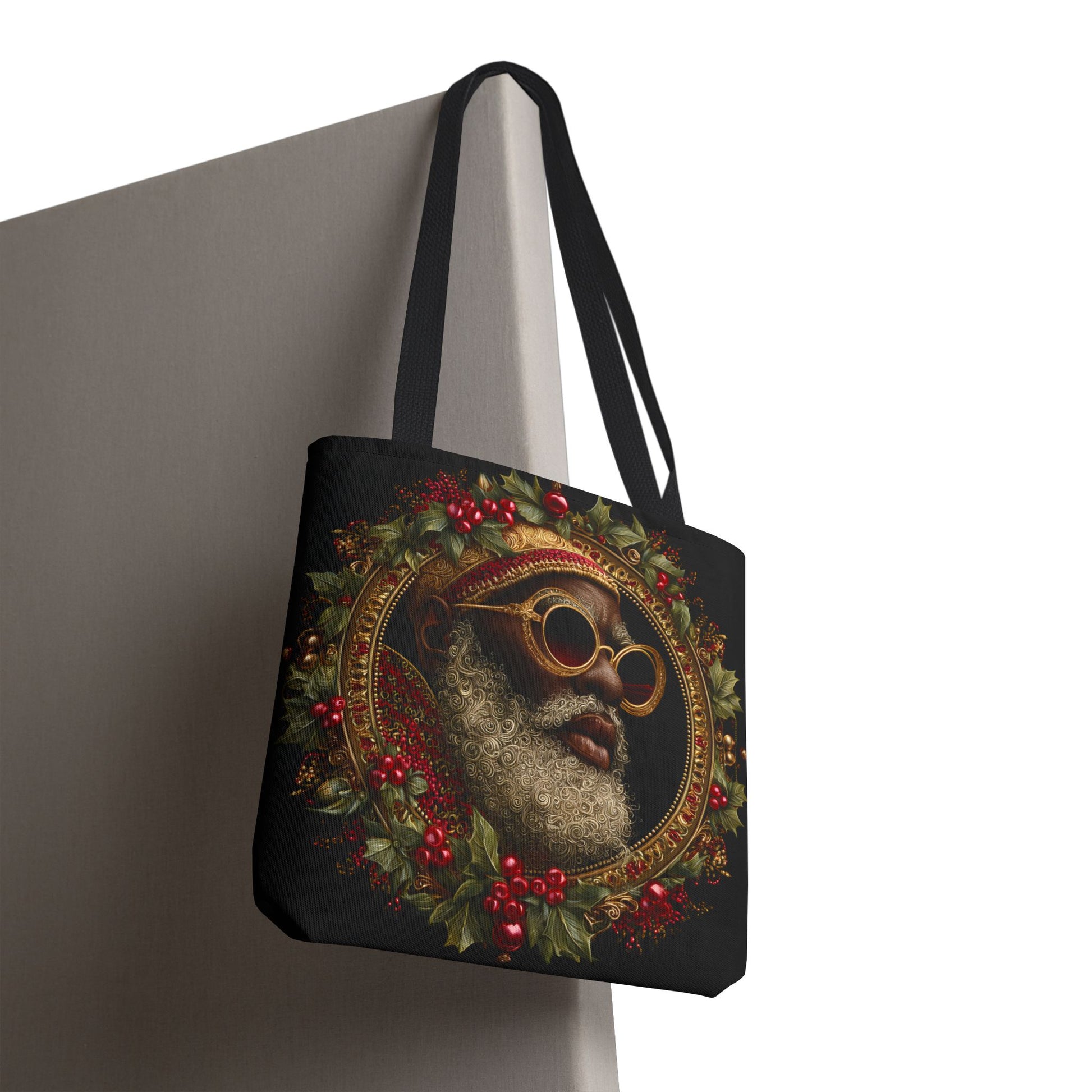 Afrocentric Holly Wreath Santa Tote – Luxe Holiday Tote Bag