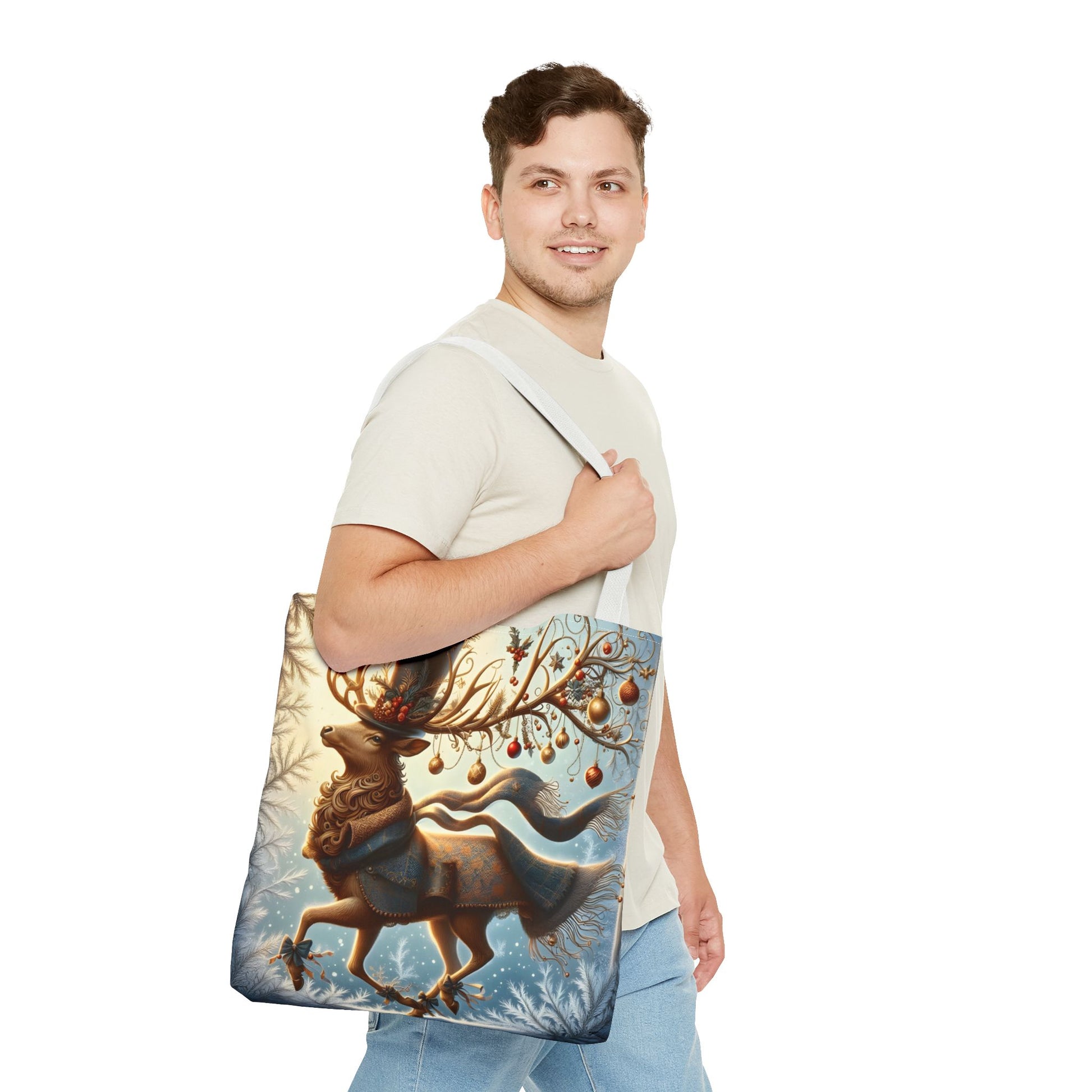 Whimsical Reindeer Christmas Tote Bag, Elegant Holiday Deer Art Tote, Winter Gift Bag, Festive Seasonal Tote for Women
