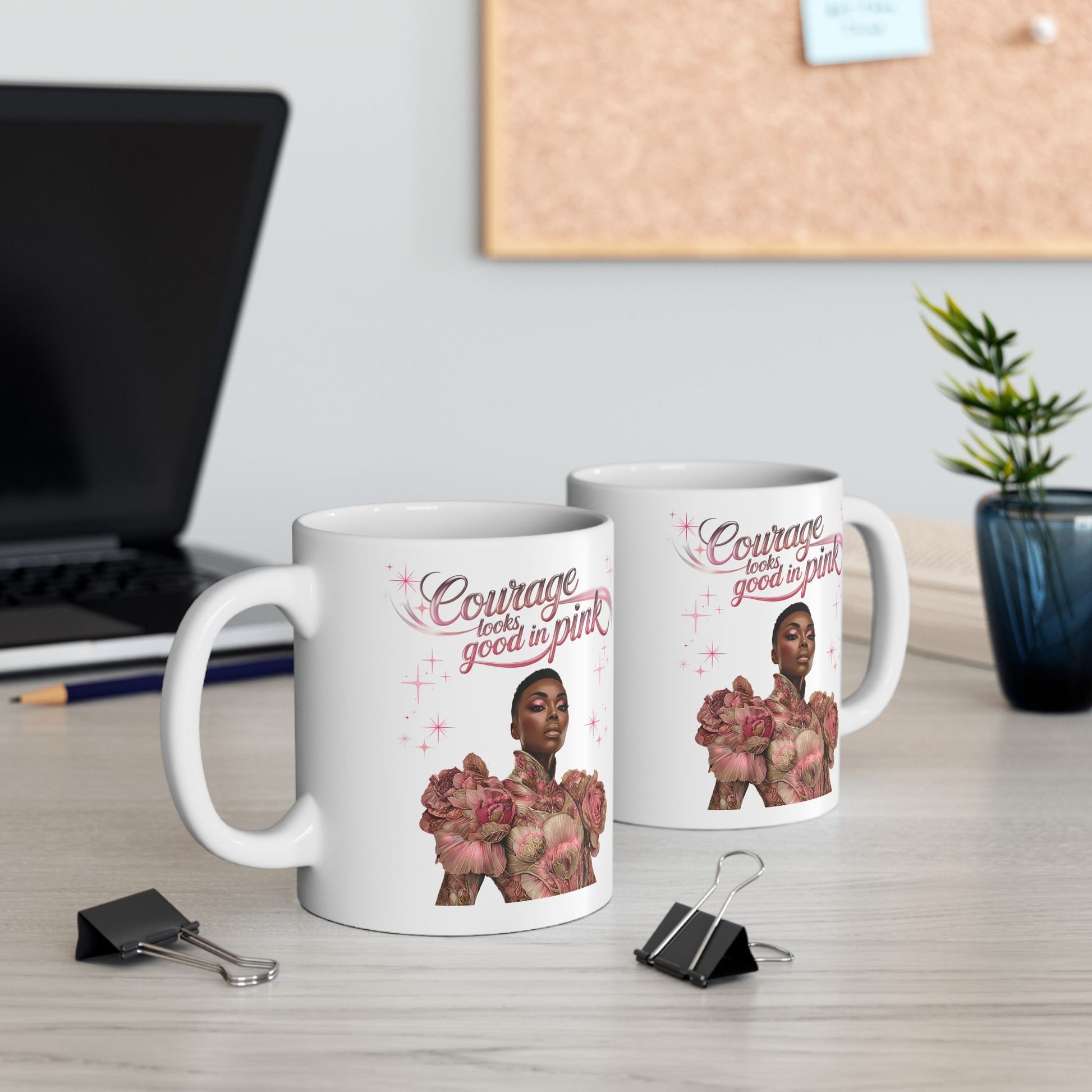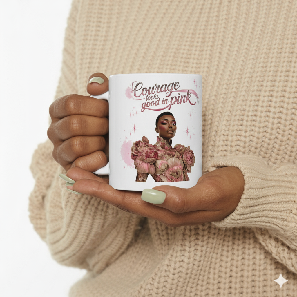 The “Courage Queen” mug is a tribute to every woman who’s faced the storm and kept her crown in place. With soft pink ribbon tones and elegant script, it’s the perfect daily reminder that courage doesn’t always roar — sometimes, it simply endures.