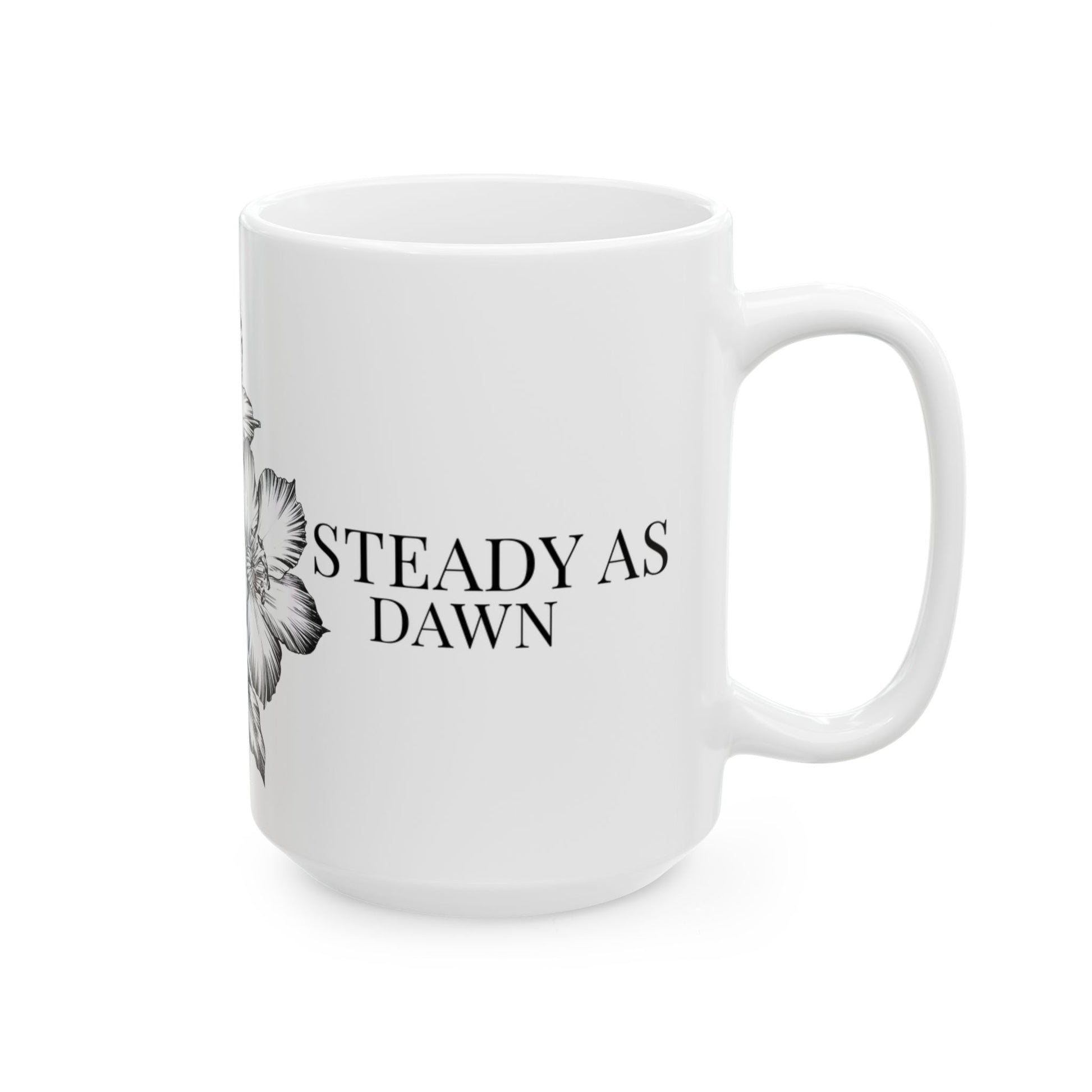 Steady as Dawn Mug – Sunrise Ritual Mug for New Beginnings- Hand-Drawn Black & White Flower Coffee Cup (11oz/15oz)
