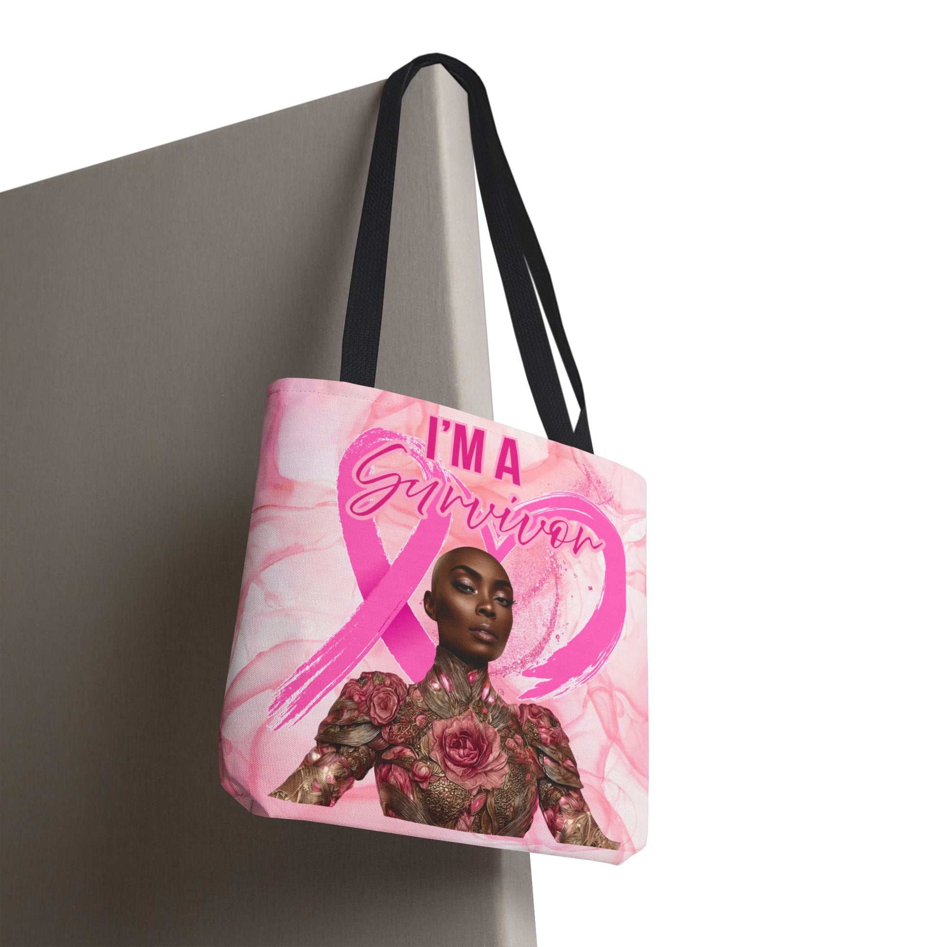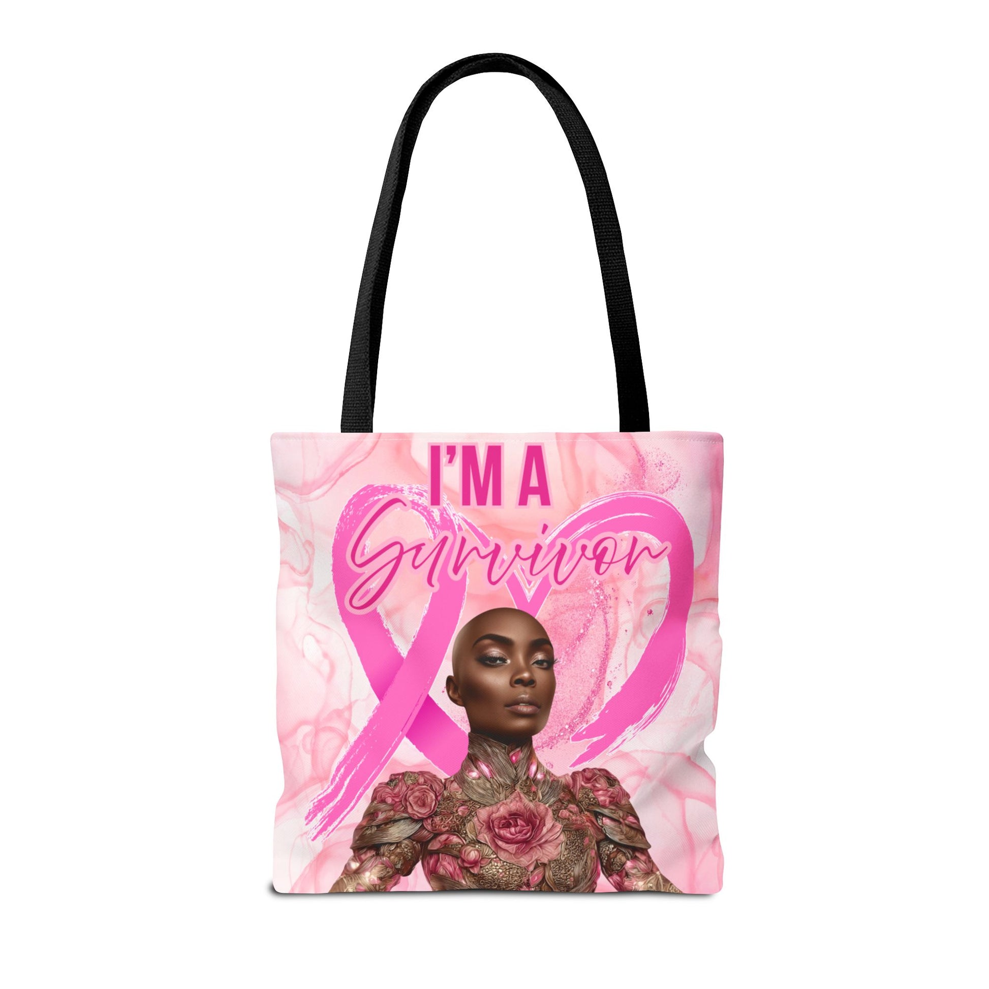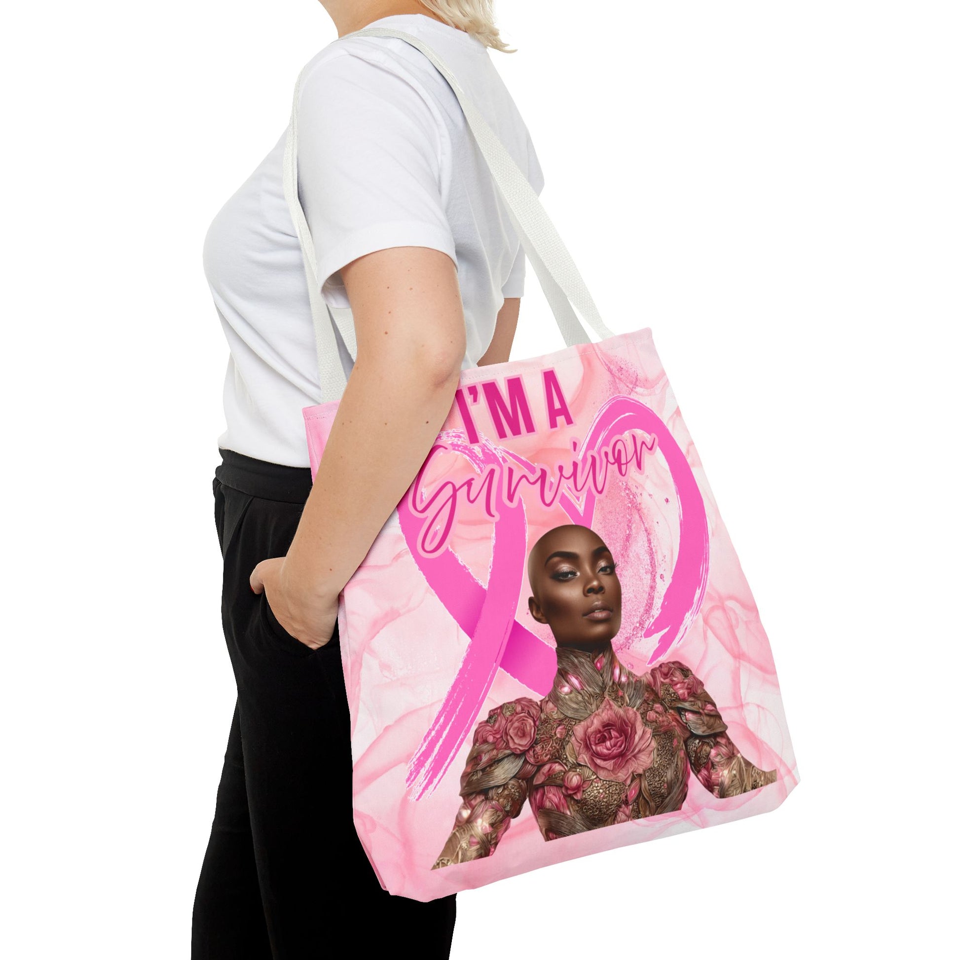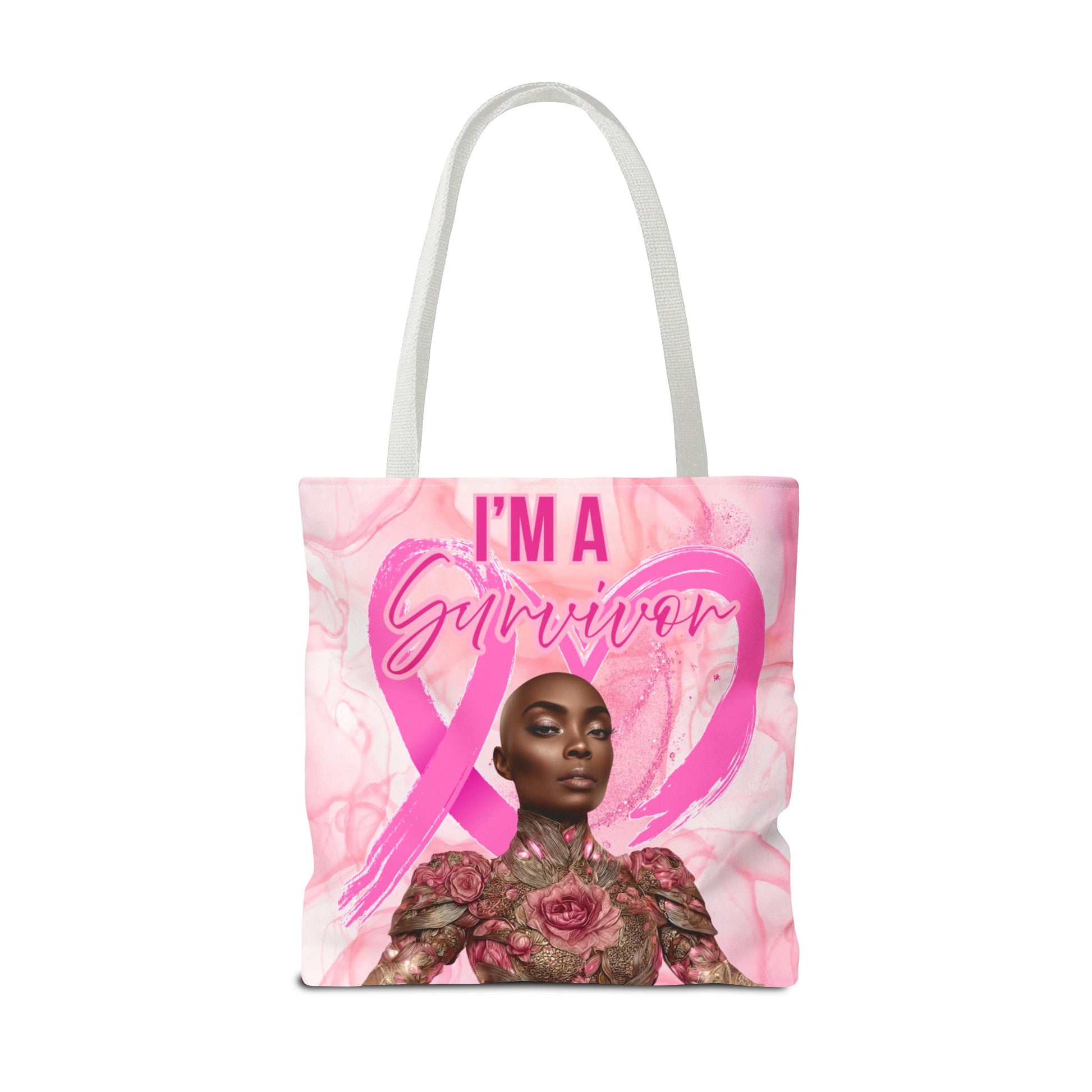Survivor Tote Bag - 'I'm a Survivor' Pink Ribbon Heart Canvas Tote| Breast Cancer Awareness Tee | Pink Ribbon Shirt for Women | Black Woman Survivor Empowerment Gift | October Awareness Apparel